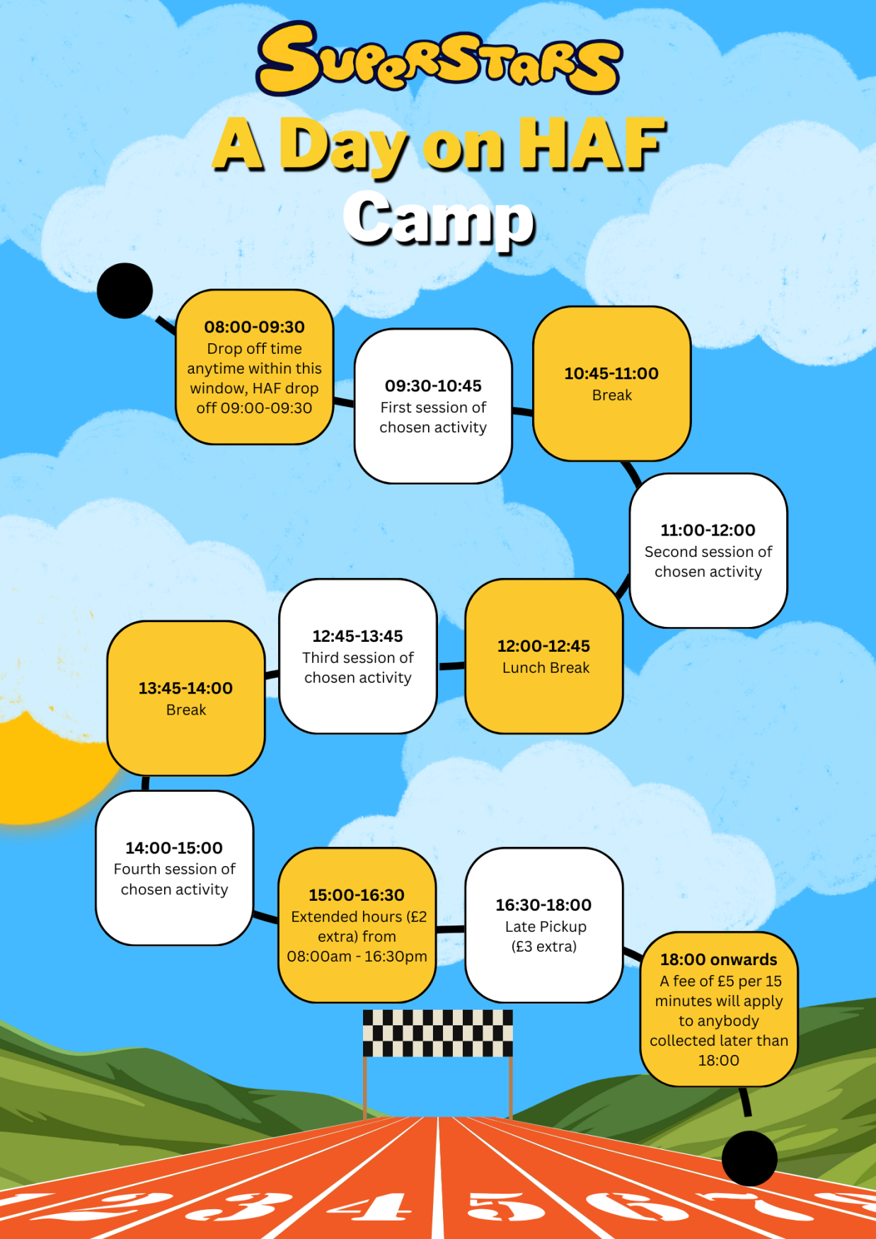 If you wish for extended hours taking you from 0800-1630 it is £2 per child per session, if you wish to book for a late pickup slot from 1630-1800 it is £3 extra per child per session which can be booked online when you make your booking.