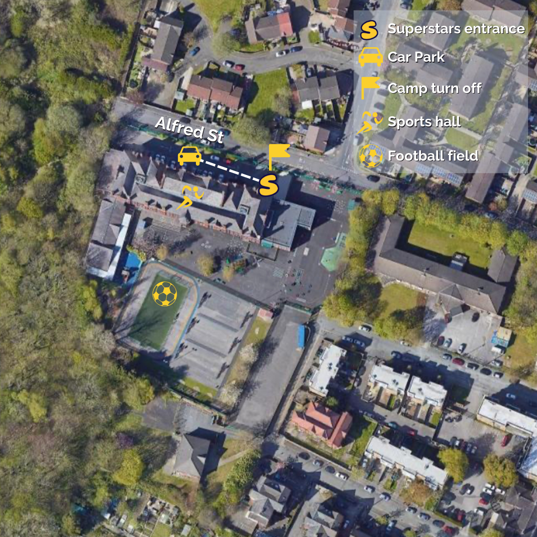 All Drop offs and Pick ups at Oasis Academy Harpur Mount take place at the main school entrance. We kindly ask for safeguarding reasons that no parent is to enter the building at any point, a Superstars Coach will welcome you and your child before taking them into camp.