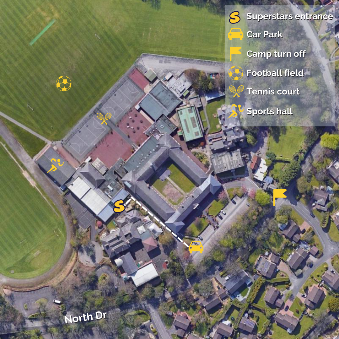 All Drop offs and Pick ups at St Edward’s College take place at the entrance to the Sports Centre. Follow the school signage to the left of the main building and the Sports Centre is on the left. We kindly ask for safeguarding reasons that no parent is to enter the building at any point, a Superstars Coach will welcome you and your child before taking them into camp.