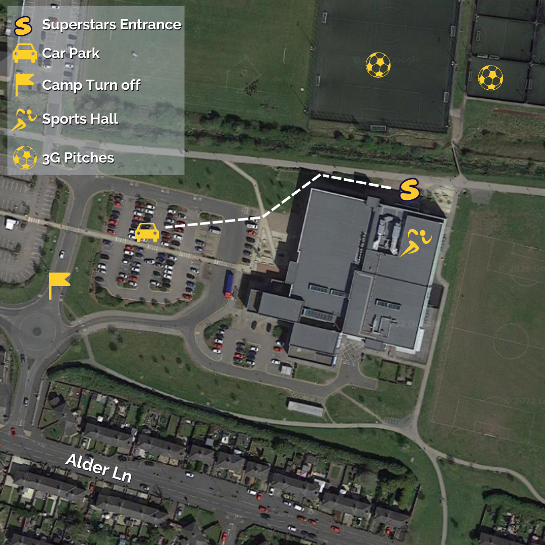 All Drop offs and Pick ups at Orford Jubilee Hub take place from the side entrance of the building, on the left hand side to the main entrance (near the astro turf pitches). We kindly ask for safeguarding reasons that no parent is to enter the building at any point, a Superstars Coach will welcome you and your child at the door before taking them into camp.